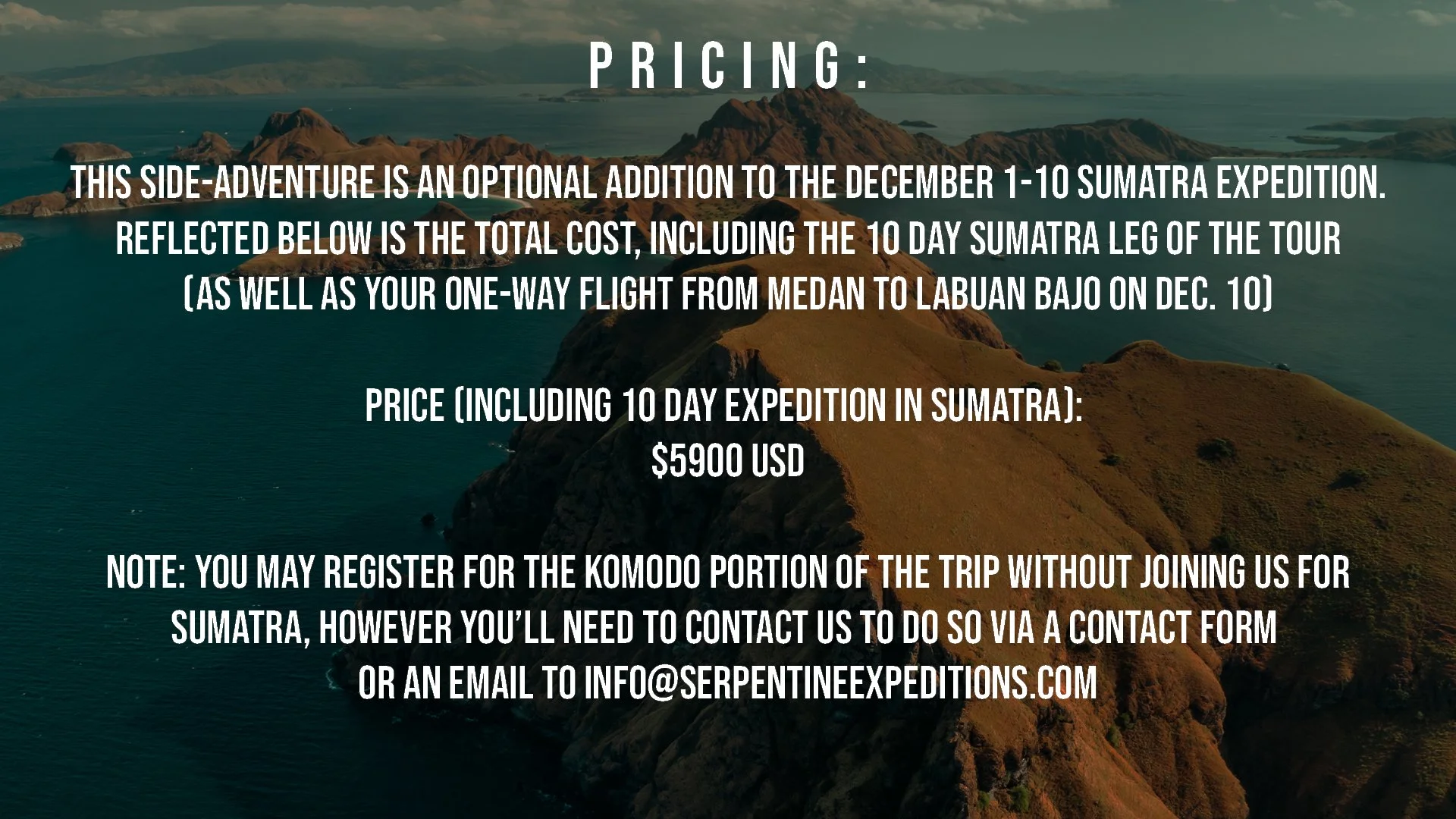 CLICK THE BUTTON TO CHECK OUT OUR SUMATRA EXPEDITION, THE PRECURSOR TO KOMODO (INCLUDED IN PRICE)