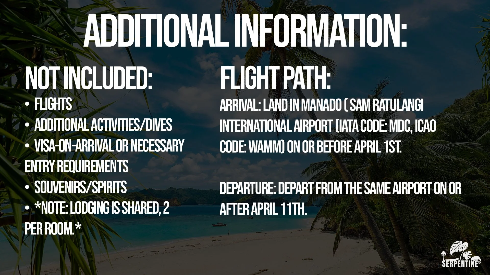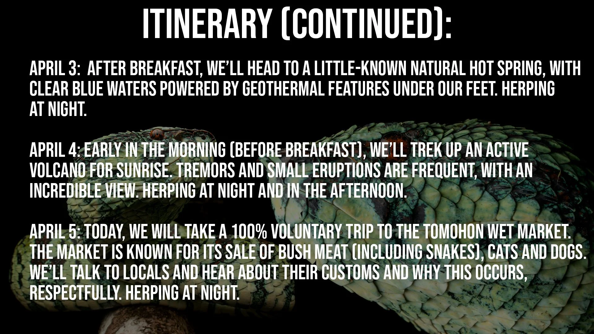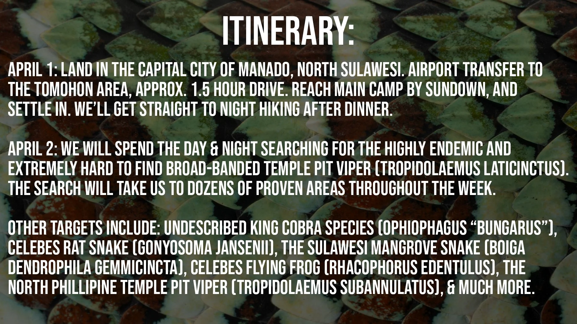 *THIS IS A DIVING AND HERPING EXPEDITION. YOU DO NOT NEED ANY CERTIFICATIONS TO SNORKEL WHILE OTHERS DIVE! north SULAWESI IS AN INTERNATIONALLY CHERISHED DIVING LOCATION, boasting 8-10 sea snake species present in it’s waters, as well as 5 sea turtle species.*