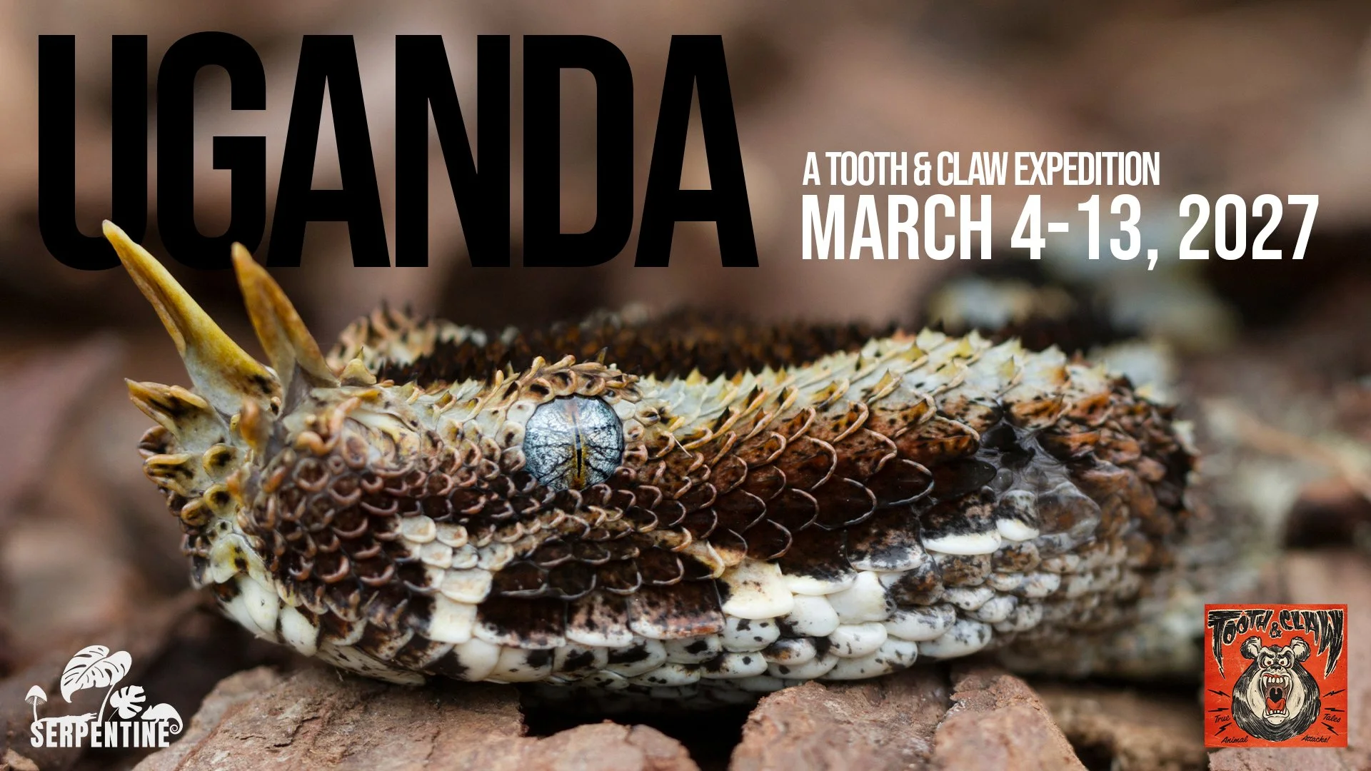 One of the most striking snakes in existence is known to call the lowlands of UGANDA HOME: Bitis nasicornis, THE RHINOCEROS VIPER.