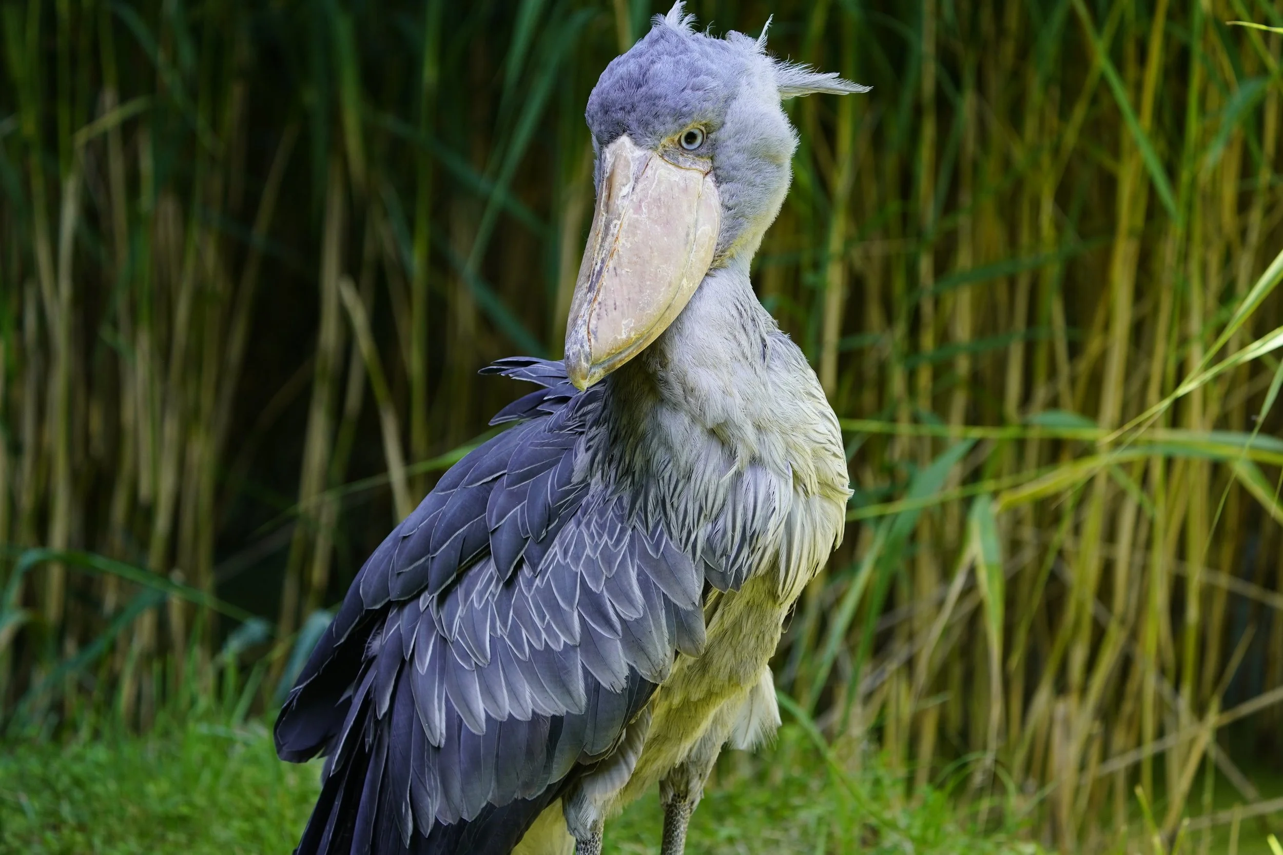 THE SHOEBILL STORK IS IN A LEAGUE OF ITS OWN. a massive hook-tipped bill delivers lightning-fast ambush strikes on lungfish, FROGS, and EVEN YOUNG crocodiles- while its eerie, “statuE hunting” style and solitary nature make it one of the most formidable wetland predators.
